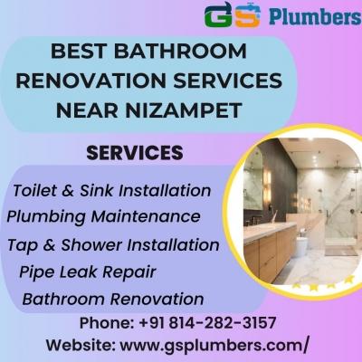 GS Plumbers is a trusted name for the best bathroom renovation services near Nizampet. We provide complete bathroom remodeling solutions with quality work and attention to detail. From plumbing upgrades to tile fitting and fittings installation, our team ensures clean and professional service. We focus on customer satisfaction, timely delivery, and affordable pricing. Whether you want a modern look or simple renovation, we are here to help.